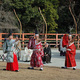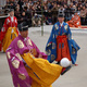 王朝装束の衣装を着て、かけ声を掛けながら鞠を蹴り上げます。