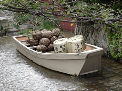 高瀬川は京都の中心部に物資を運びいれるため角倉了以が開いた運河で、この川を通る高瀬舟の荷物をあげおろしする船溜所を船入といっていました。高瀬川は鴨川に平行して十条まで南下し、伏見で宇治川に合流するため江戸時代には、底が平たい高瀬舟が物資を運びいれていました。現在の一之船入は復元された高瀬舟が一艘あるだけですが桜の名所としても知られています。