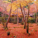 不断桜と紅葉が一度に楽しめる場所として有名な実光院は、門前も真っ赤に染まります。